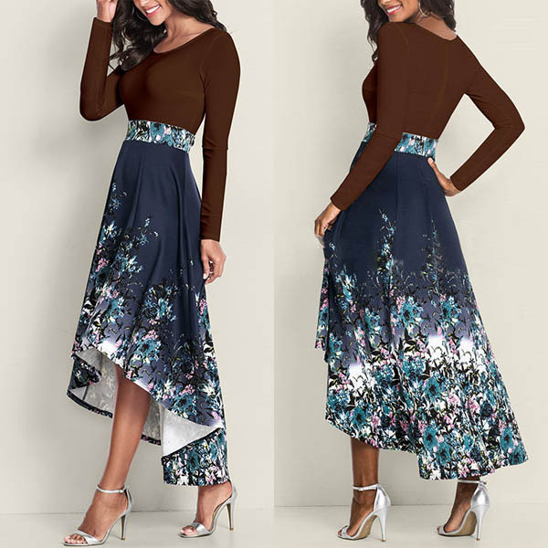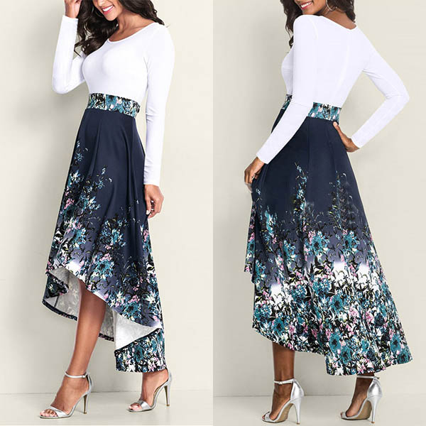 It is a good chance to give your style an instant boost when you wear this dress. What makes this piece look so stylish and attractive? It owes to the printed spliced high-low hem design. Dress it up with your sexy heels and favourite handbag,you can have a beautiful dating look!