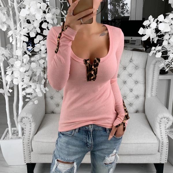 Fashion Long Sleeve Round Neck Printed Spliced T-shirt