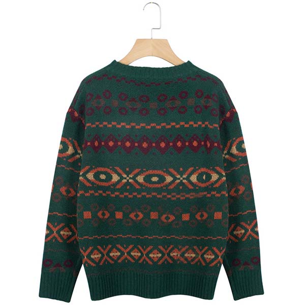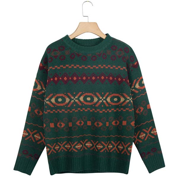 Embrace the cold days with this comforting sweater! Finished with long sleeve,round neck and a loose silhouette,simple,classic yet stylish. Its chic printed pattern design will make this piece look more attractive. We suggest you matching with a skirt to have a beautiful look.