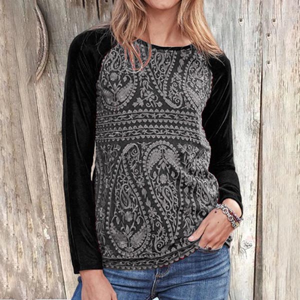 Fashion Long Sleeve Round Neck Printed T-shirt
