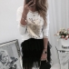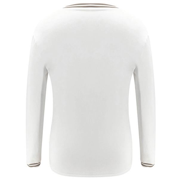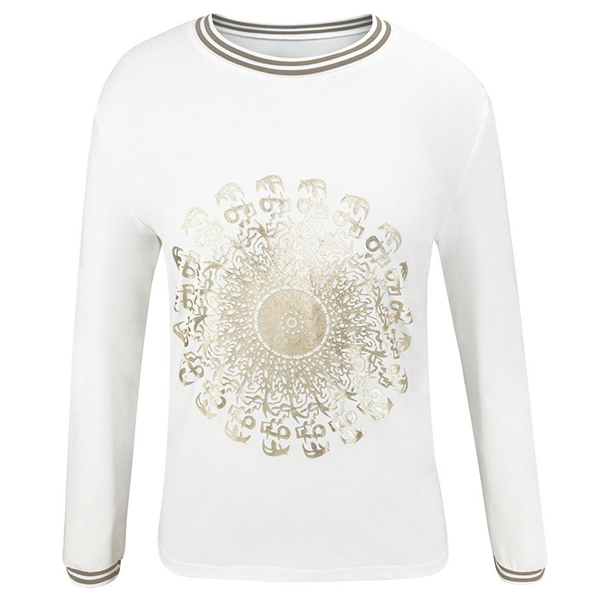 When it comes to a simple,cozy and stylish style,this t-shirt can give you that! It is crafted from soft,breathable fabric,with long sleeve and round neck design,this simple style piece can ensure you a long-lasting comfort. The gold-tone printed details will further enhance its charm. All-match design allows to be matched with different style bottoms.