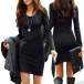 Fashion Long Sleeve Round Neck PU Leather Spliced Dress