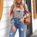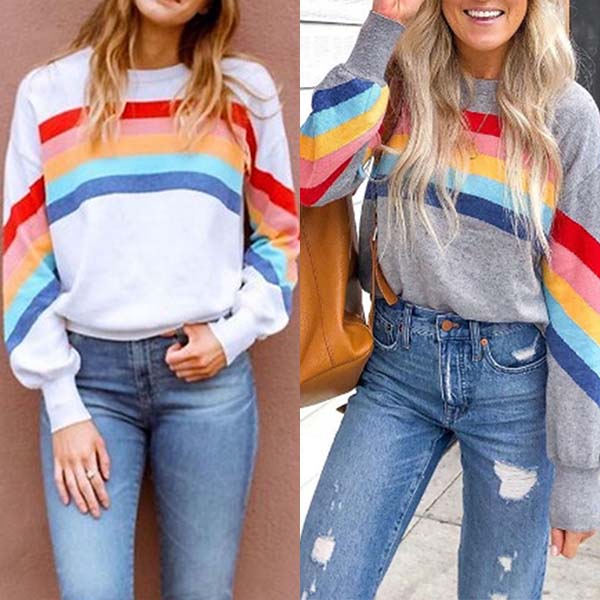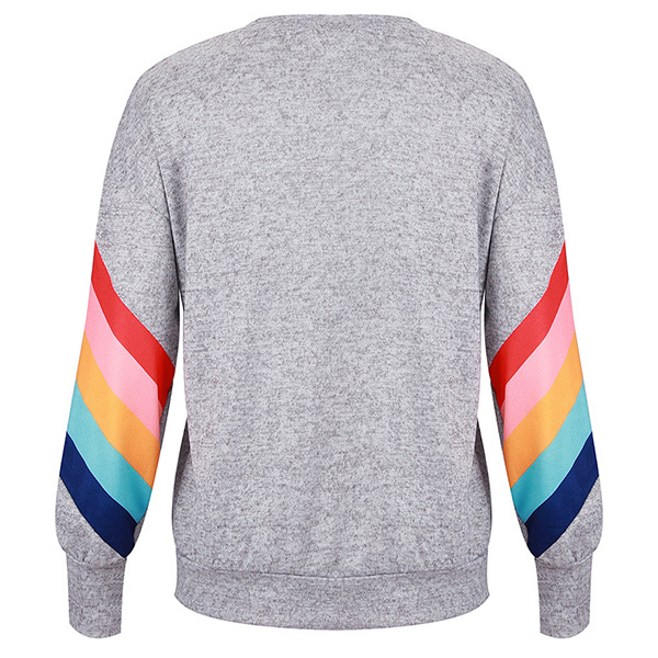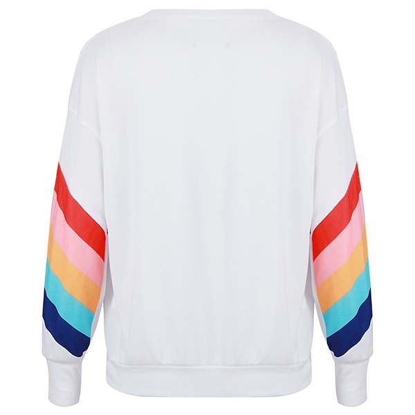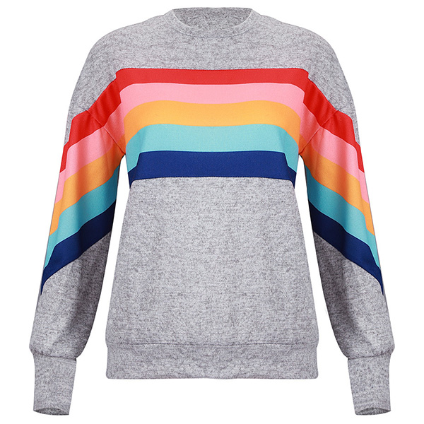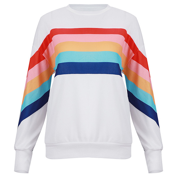 Enrich your wardrobe ensemble by adding this rainbow sweatshirt! It is crafted from soft and breathable fabric,with long sleeve and round neck design,this classic yet stylish sweatshirt can offer you a comfortable day. All-match design allows to be matched with different style bottoms like shorts,skirts,jeans and so on.