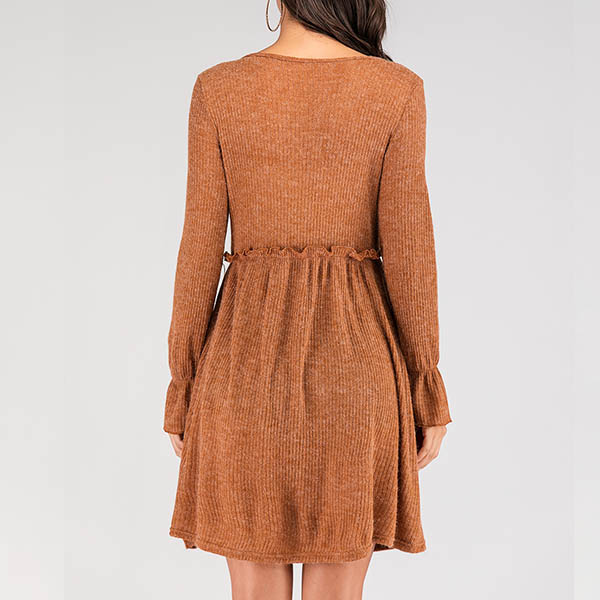 In these early autumn season,this cozy yet stylish knit dress can easily strike your mind. Finished with long sleeve,round neck and cozy fabric,this piece can ensure you a comfortable day. The ruffle high waist design not only can showcase your slender figure,but also can enhance your feminine appeal. Like it? Then try it to update your style.