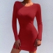 Fashion Long Sleeve Round Neck Slim Fit Knit Dress