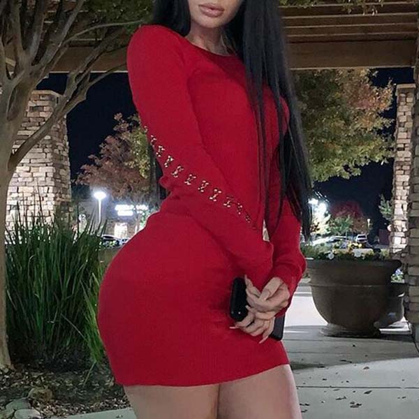 Crafted in a solid color, this long sleeve knit dress bears a simple, chic design that is ideal for these cold days. The unique button design at the sleeve part makes this piece look so attractive,while the fit silhouette design will showcase your slender figure. You can wear it alone on match with your overcoats.