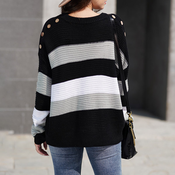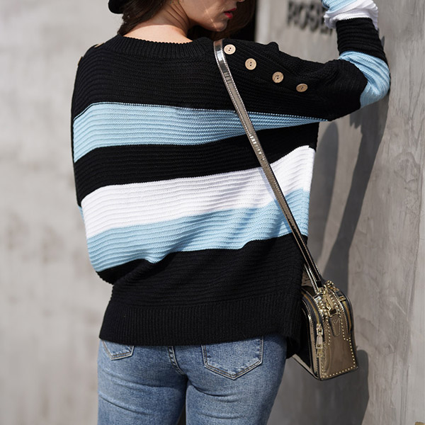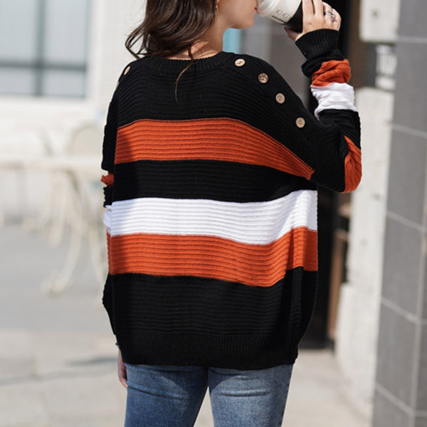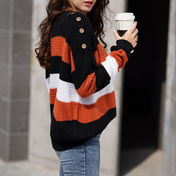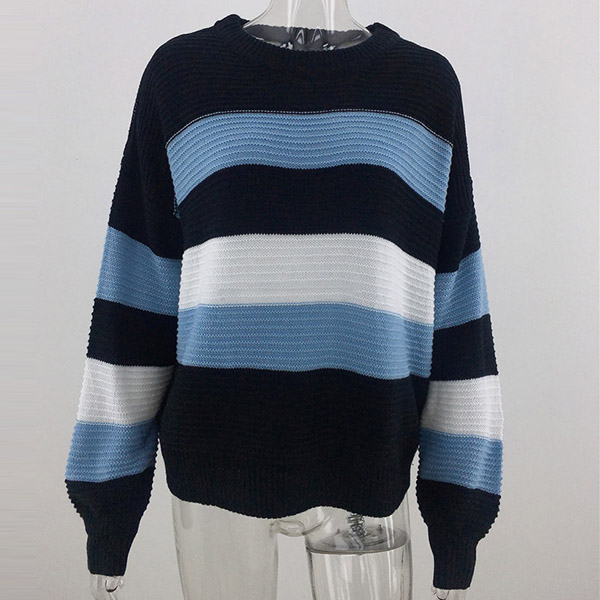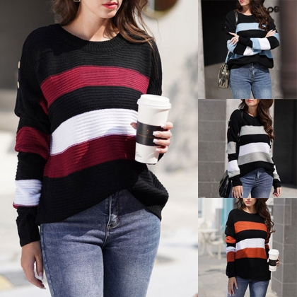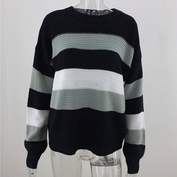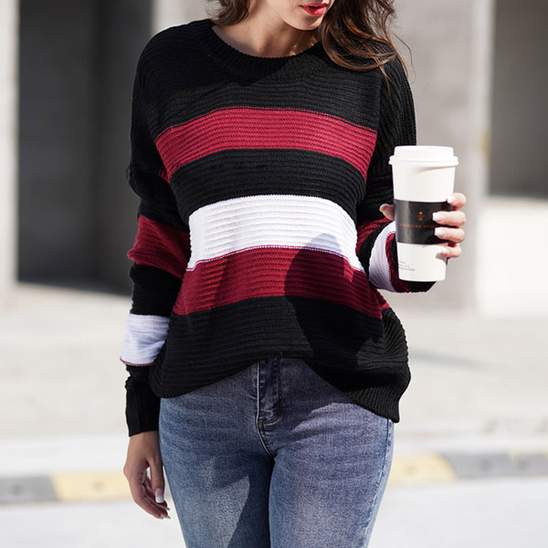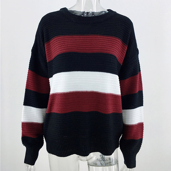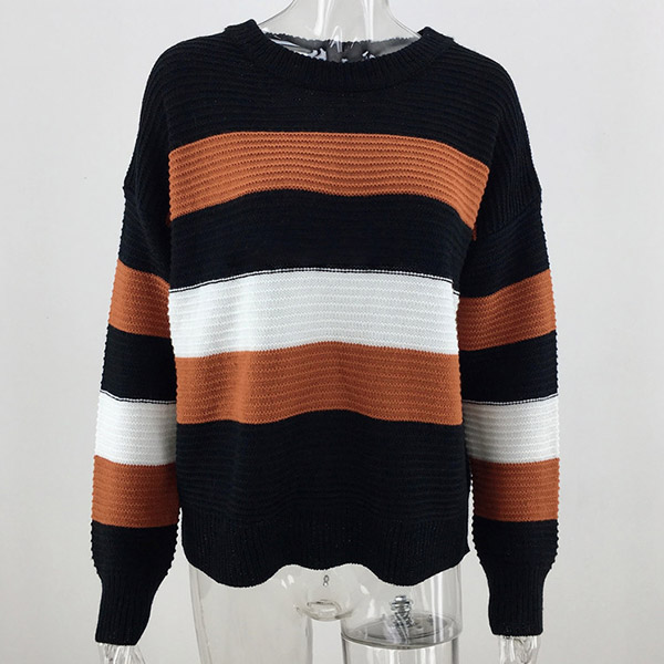 This cozy yet stylish knit top is just the thing you need on these autumn days. Striped element design makes it look so stylish and popular. Finished with long sleeve,round neck and a relaxed-fit silhouette,this knit top can keep you warm as well as offer you different matching styles.