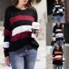 Fashion Long Sleeve Round Neck Striped Knit Top