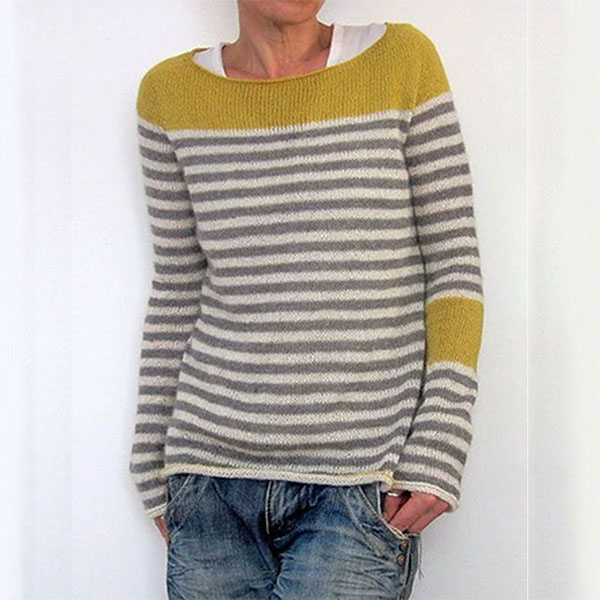 Embrace the warmth of a sunny weekend of autumn with this wonderful knit top! Striped element design makes it look stylish and popular. Finished with long sleeve and round neck design,this piece can keep you warm while it maintains your style.