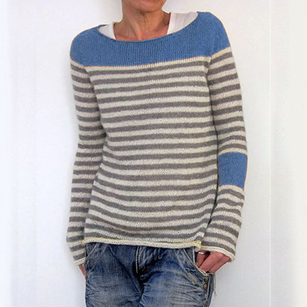 Fashion Long Sleeve Round Neck Striped Knit Top