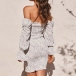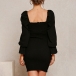 Fashion Long Sleeve Square Collar Front Drawstring Dress