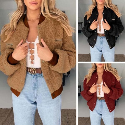 Fashion Long Sleeve Stand Collar Faux Cashmere Coat