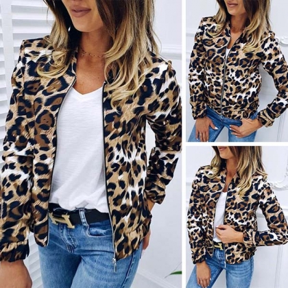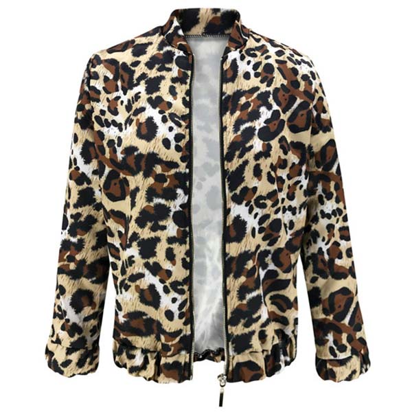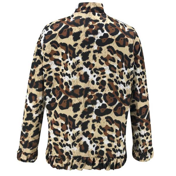 Fashion Long Sleeve Stand Collar Leopard Printed Thin Coat