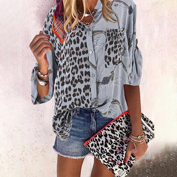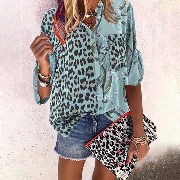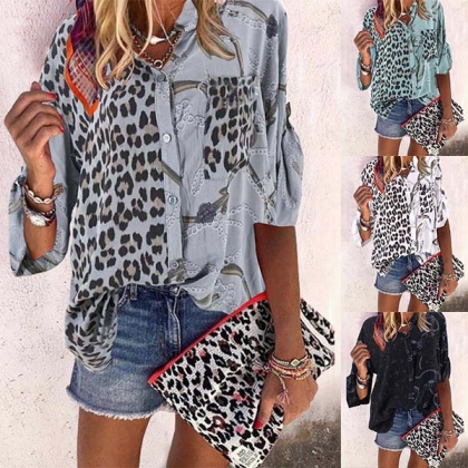 When walking on the street with this shirt,you can easily win more eyes. Finished with long sleeve and stand collar design,the leopard printed details make this piece look so eye-catching. You can match it with a skirt or jeans to have a wonderful day!