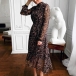 Fashion Long Sleeve Stand Collar Ruffle Hem Printed Dress