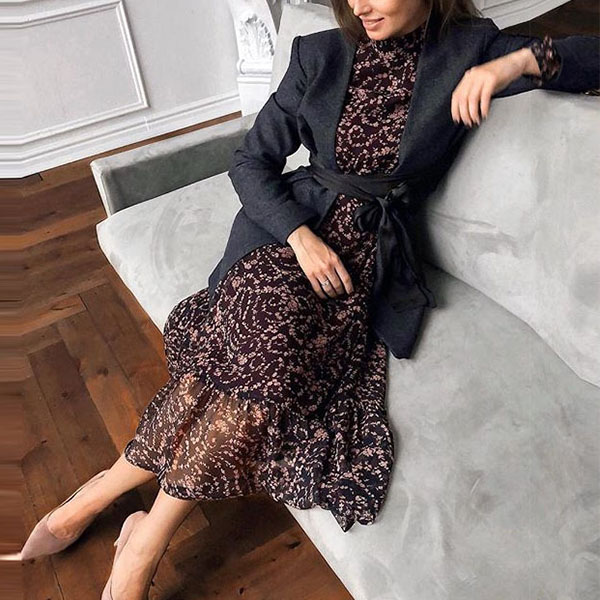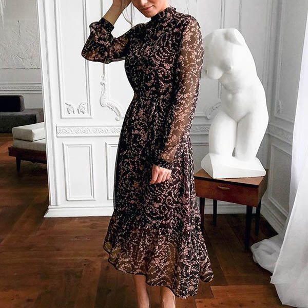 Your wardrobe is not complete if without a printed dress. So how about this piece? It features vibrant floral print details,finished with long sleeve,stand collar and ruffle hem design,this dress can offer you an effortless charming and beautiful look.