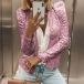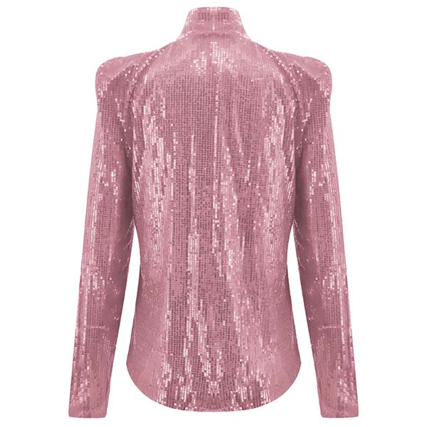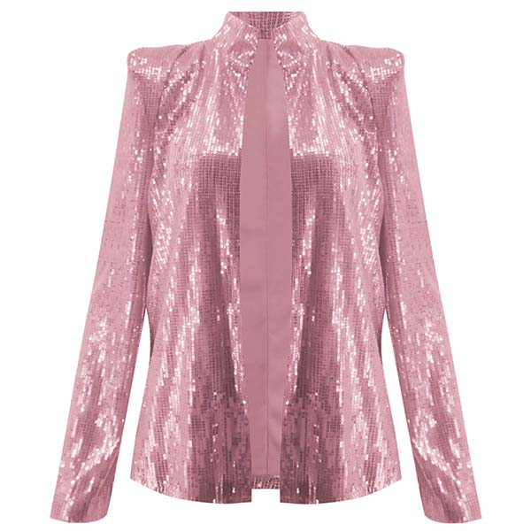 You deserve to win more eyes when you wear this sequin coat. It is finished with long sleeve,stand collar and a clean,fit silhouette,delicate yet stylish. The sequin details will give you a more shinning look. When you feel a little cold,you can just slip into this little piece.