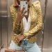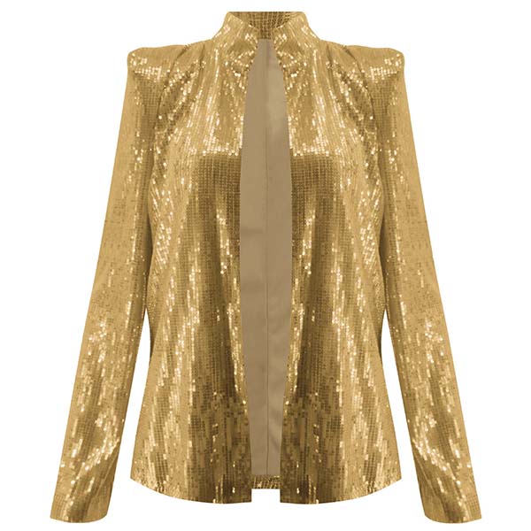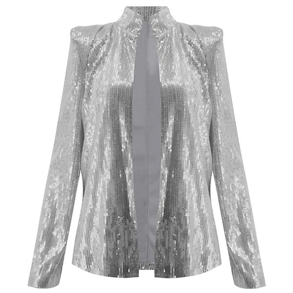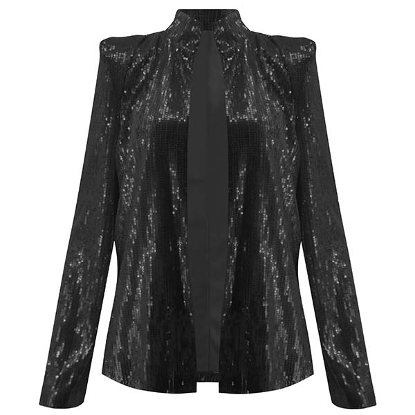 Fashion Long Sleeve Stand Collar Sequin Coat