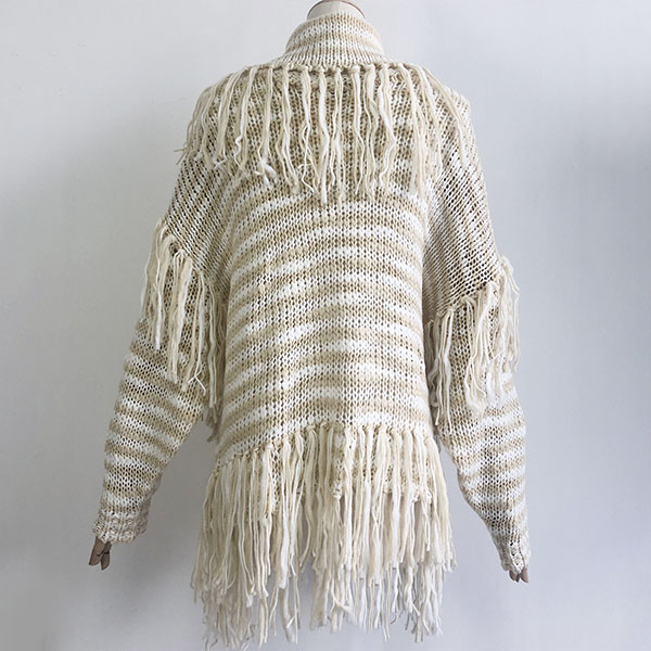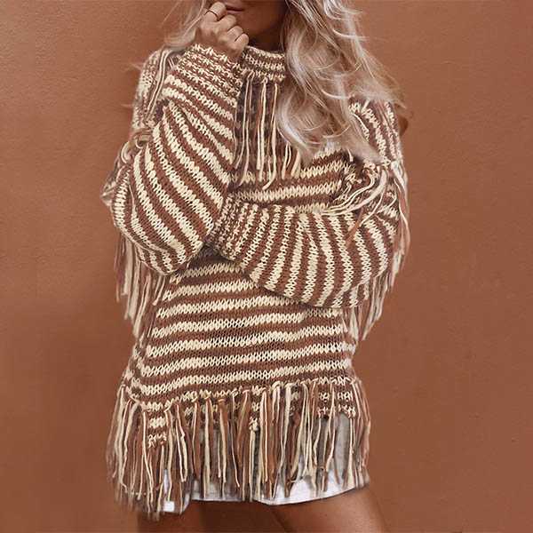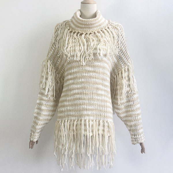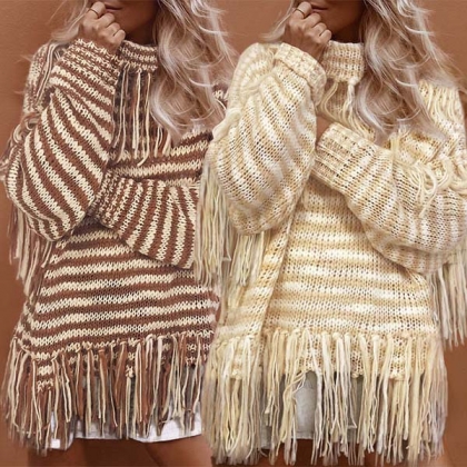 Fashion Long Sleeve Turtleneck Tassel Striped Sweater