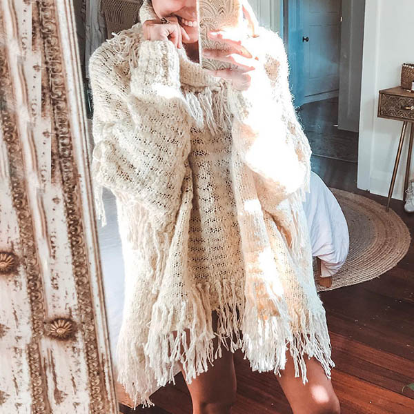 There is no doubt that you would be the focus when you wear this sweater. Finished with long sleeve and turtleneck design,the striped element and tassel details make this piece look so distinctive. When strolling on the street with this piece,you would be a pleasant sight!