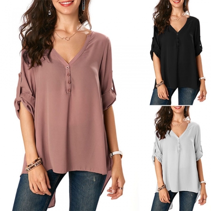 the v-neck design will enhance your feminine appeal,while the high-low hem and back-slit design make this