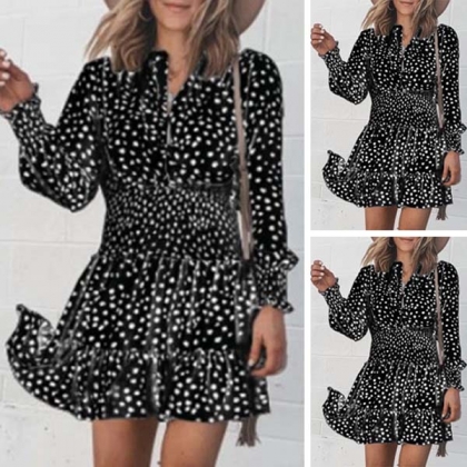 Looking for a proper dress for your night dating and weekend out? Then we suggest you this piece! This printed dress is designed with long sleeve,v-neck and high waist design,which can make you look effortlessly charming and beautiful. So why not take interest in it?