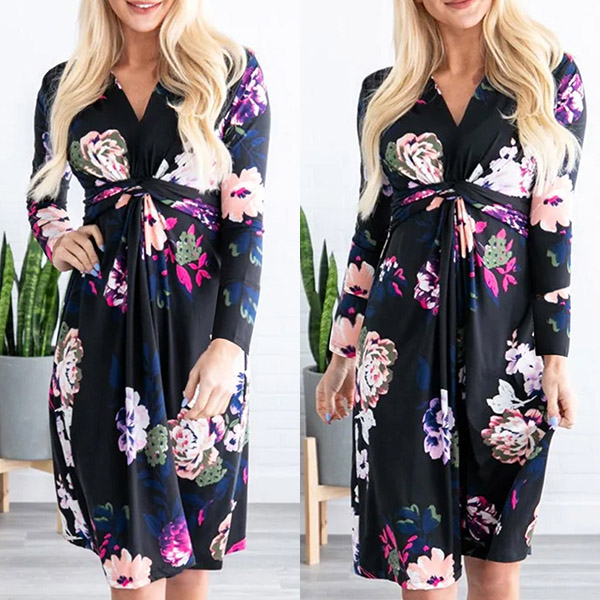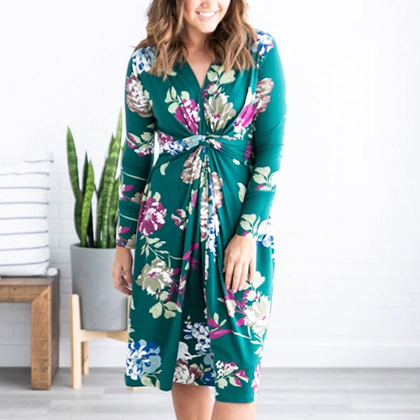 Your wardrobe can be more colorful by adding this printed dress! Its vibrant floral print details make this piece look more eye-catching,while the v-neck and twisted design will further enhance its charm. From your daytime out to night dating,this beautiful dress can give you a perfect transition.