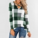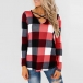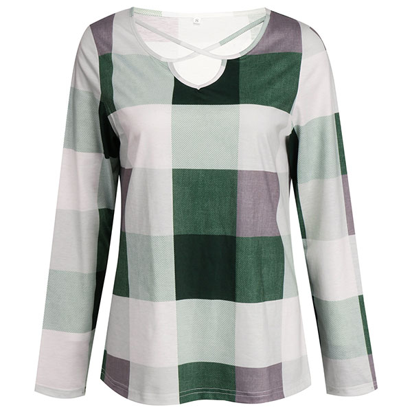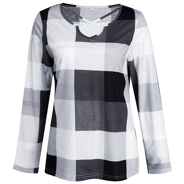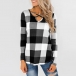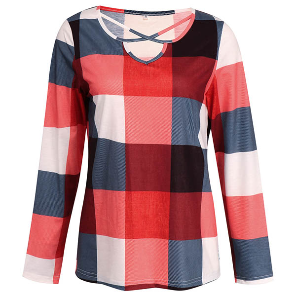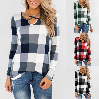 Fashion Long Sleeve V-neck Plaid Top