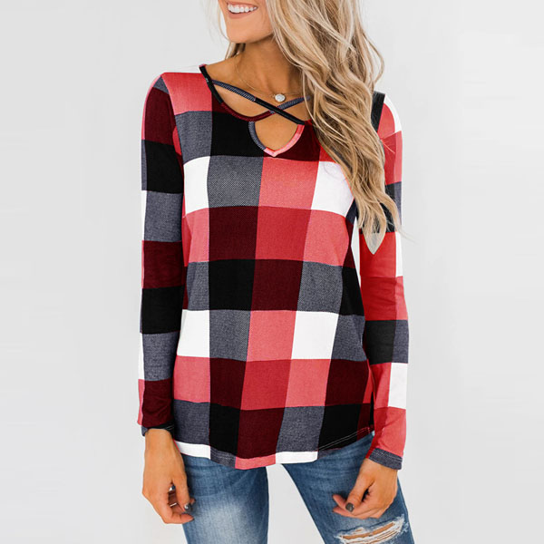 Plaid element is always the darling in the fashion field. So why not catch up with this trend with a plaid piece? How about this top? Crafted from soft and breathable fabric,with long sleeve and v-neck design,this piece knows how to give you a comfortable day while it maintains your style.