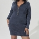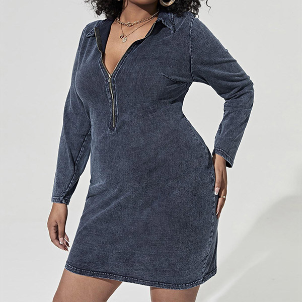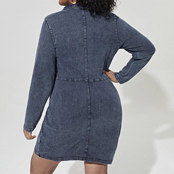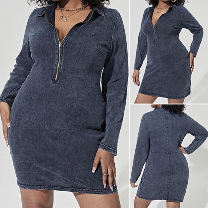 Fashion Long Sleeve V-neck Plus-size Denim Dress