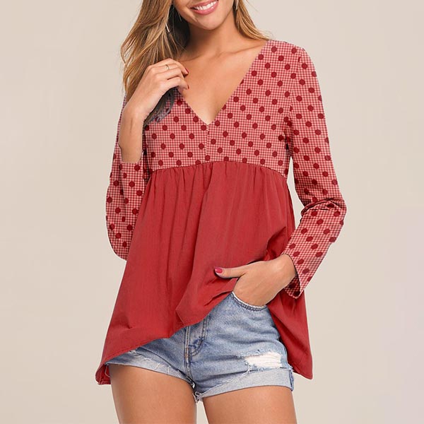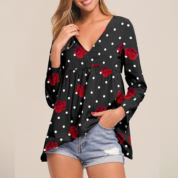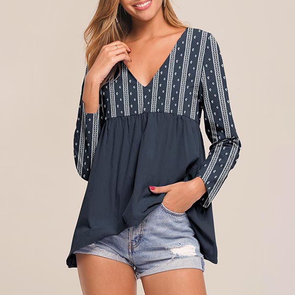 When it comes for a casual yet stylish style,you can have a try this top. It is finished with long sleeve and v-neck design,its soft and breathable fabric can offer you a comfortable day,while the chic printed details will make this piece look more eye-catching and stylish. Try to match with a tight pants to enjoy your wonderful day.