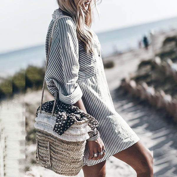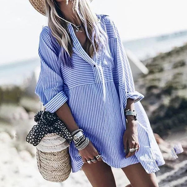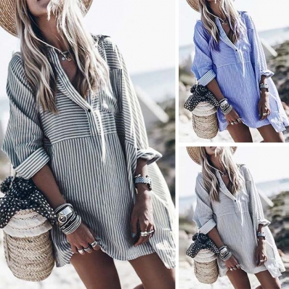 No matter for your weekend out or busy workdays,this striped shirt can be a good choice. It is finished with long sleeve,v-neck and a loose silhouette,this shirt knows how to keep you comfy while it maintains your style. Update your wardrobe by adding this long shirt.