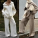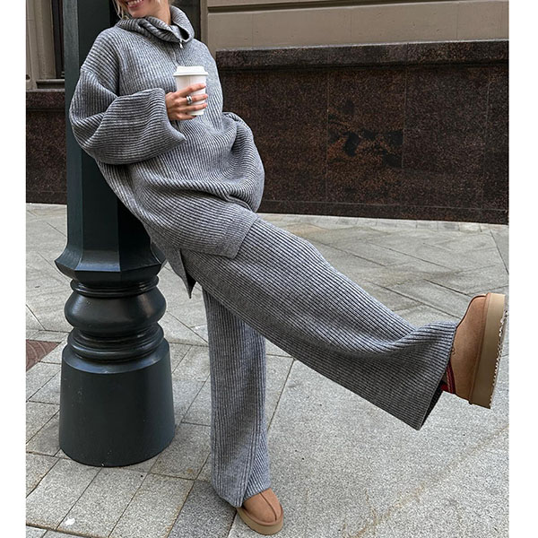Omfamna tidlös elegans med vårt exklusiva koordinerade stickade set i premiumkvalitet. Tröjan har en praktisk halvdold dragkedja som låter dig reglera både ventilation och halsringning – perfekt för såväl avslappnade hemmamys som stilrena vardagslooks. Den löst stickade, mjuka strukturen ger oöverträffad komfort och följsam rörelsefrihet, medan de vida, svepande byxorna smickrar alla kroppsformer och skapar en modern, polerad silhuett.