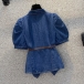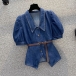 Fashion Lotus Sleeve POLO Collar Short-style Denim Shirt
