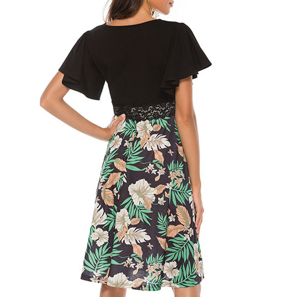 When it comes to an instant charming look,then you can just slip into this beautiful dress. Its alluring design details like lotus sleeve,v-neck and printed hem design make this piece full of charm. For your daytime out and night events,this dress can be a perfect solution.