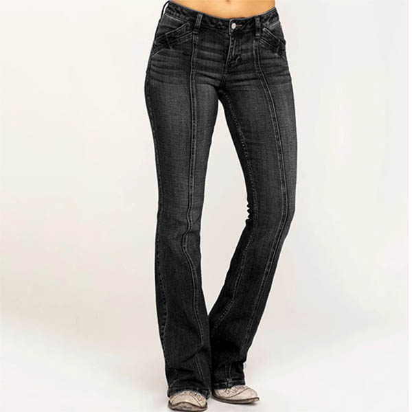 No matter for your workdays or casual weekends,this denim flared pants can be a good choice. It is finished with middle waist and a fit silhouette,this pants not only can showcase your slender legs,but also can offer you different fashion styles by teaming with different style tops.