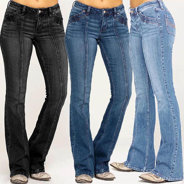 Fashion Middle Waist Slim Fit Denim Flared Pants