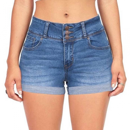Fashion Middle Waist Slim Fit Denim Shorts