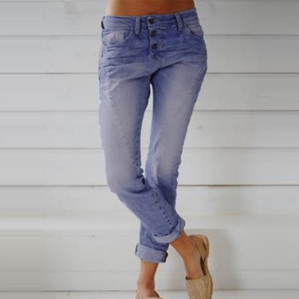 No wardrobe would be complete without a jeans. Add this one to your wardrobe and be prepared to look effortlessly in style. Crafted from soft and breathable fabric,with middle waist and a clean silhouette,this jeans can keep you comfy as well as maintain your style.