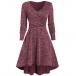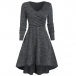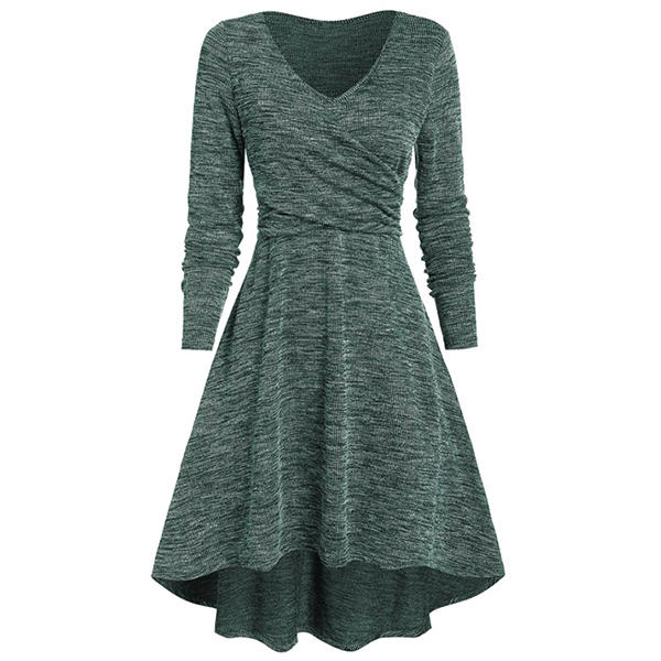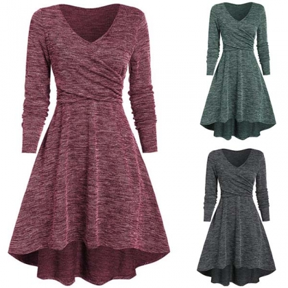 Fashion Mixed Color Long Sleeve V-neck High-low Hem Dress