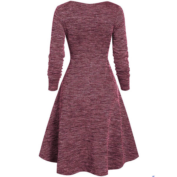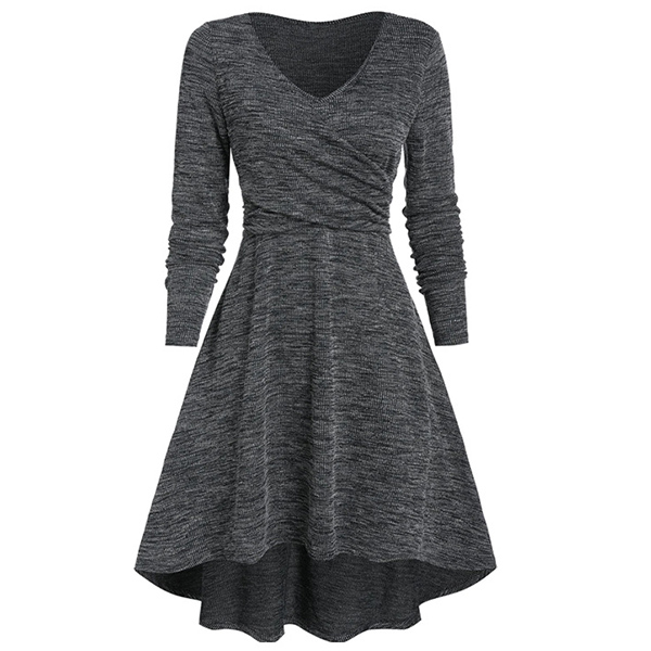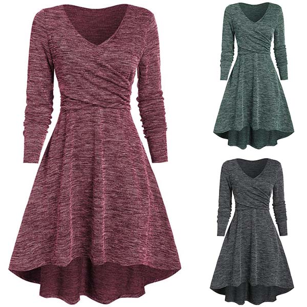 If there is one way to instantly give your image a style boost, it is by introducing this dress into your ensemble. Mixed color style,finished with long sleeve,v-neck and a high-low hem,this dress is perfect fit for your workdays and weekend out.