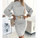 Denna bodycon-klänning har en hög halsringning, figurnära silhuett och bekväma, långa ärmar som ger en modern och elegant framtoning. Bältet tillför en sofistikerad touch. Vill du ha en?