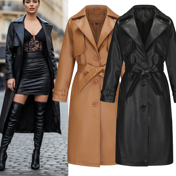 Vad sägs om den här jackan? Den skårade kavajdetaljen ger en skräddarsydd och polerad look till jackan, medan den långlinjeformade silhuetten erbjuder en elegant och förlängd effekt. PU-materialet i konstläder ger jackan ett elegant och modernt utseende, medan det självknutna bältet snäpper ihop sig i midjan och skapar en smickrande och feminin siluett. Denna longline-jacka är ett mångsidigt och tidlöst tillägg till din garderob som får dig att känna dig snygg och sammansatt utan ansträngning.