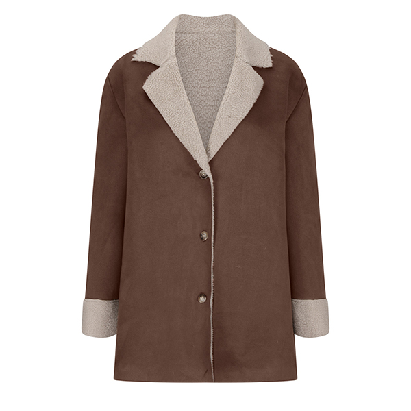 Trendig långärmad jacka med plyschfoder och notch-krage