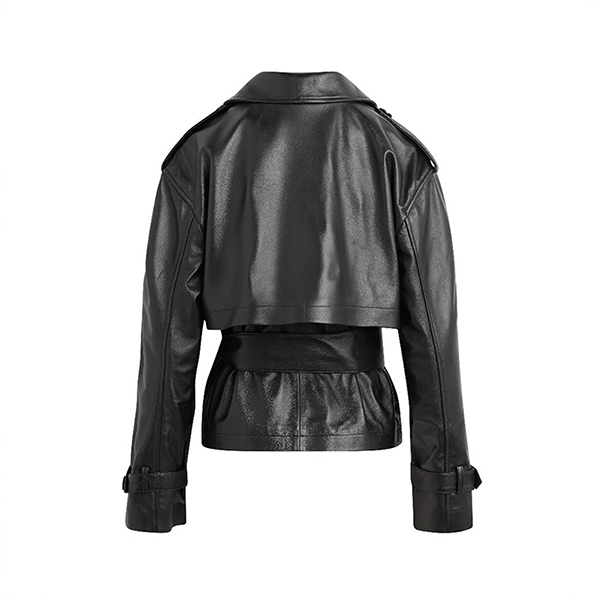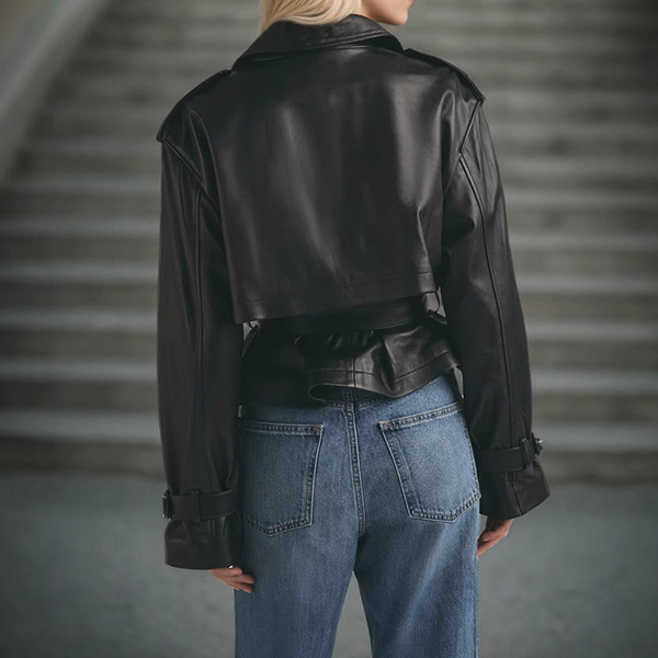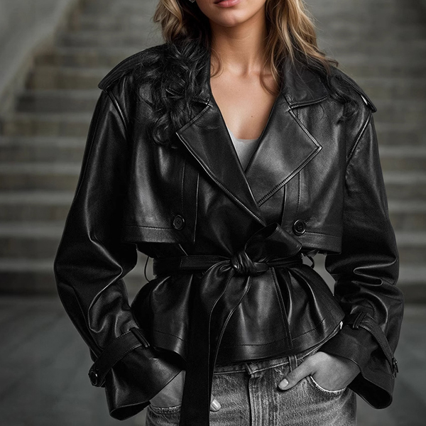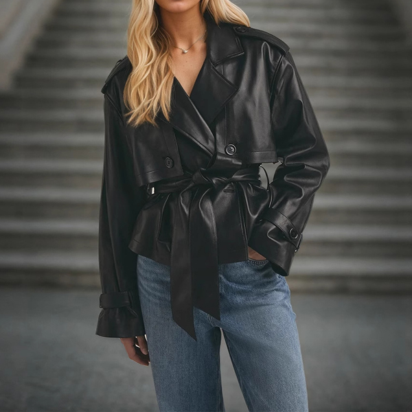 PU-konstläderjacka med notch-krage, lång ärm och öppen front – trendriktig stil