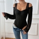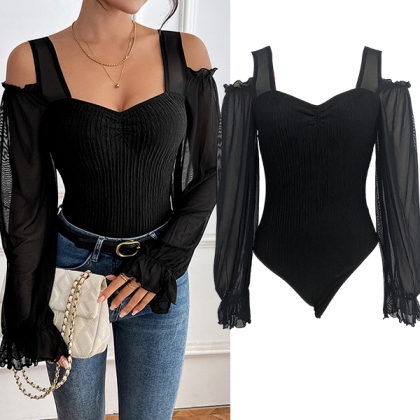 Upptäck en body med ribbad textur som formar sig efter kroppen och ger en smickrande, kroppsnära passform. Tack vare bekväm stretch rör du dig obehindrat samtidigt som ribbningens mönster skapar visuellt djup. Den innovativa öppna axeldesignen tillför en modern, lekfull twist – subtil hudexponering känns fräsch snarare än avslöjande. Långa ärmar ger behaglig täckning, varvas elegant med de avskalade axelöppningarna för stilfull balans. Genomtänkt konstruktion förenar komfort och stilinnovation i en och samma plagg. Matcha med skräddarsydda byxor för en avslappnat elegant look eller kombinera med kjol för en koordinerad, sofistikerad outfit. Perfekt för dig som vill sticka ut med tidlös design och nyanserad detaljrikedom.