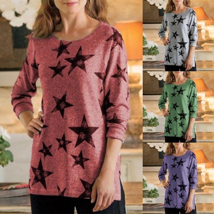 Fashion Pentagram Printed Long Sleeve Round Neck T-shirt