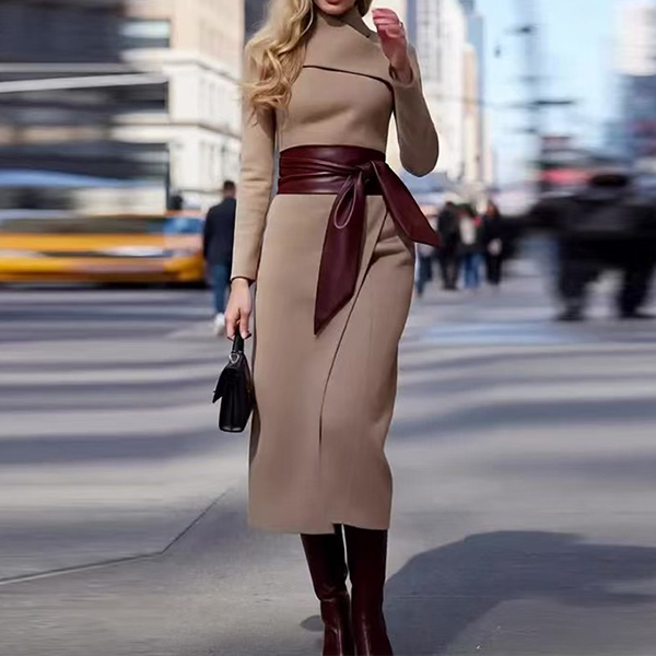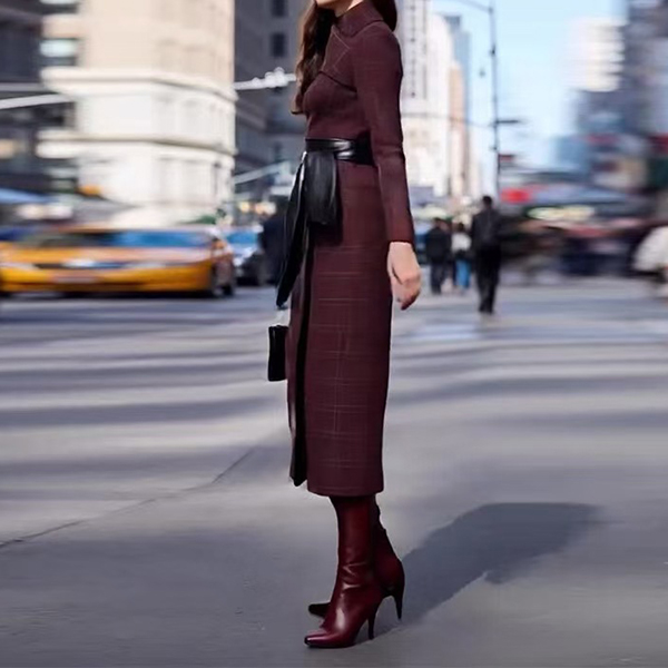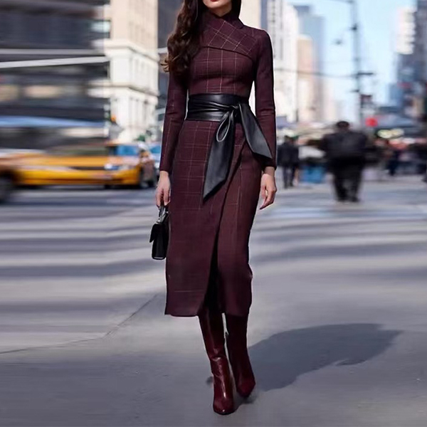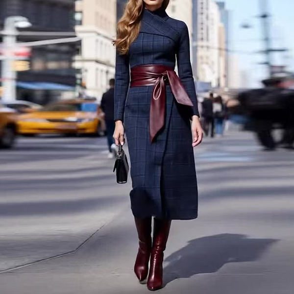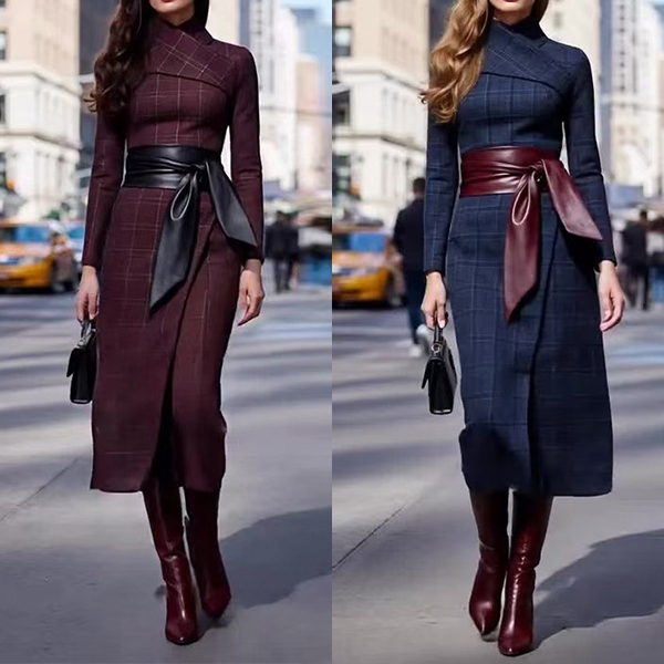 Kliv ut med stil i denna rutiga klänning. Den här eleganta klänningen har en trendig hög halsringning och långa ärmar, perfekt för säsongsövergångar. Det klassiska rutiga mönstret ger sofistikering, medan sidoslitsen och knytdetaljerna skapar en smickrande silhuett som framhäver din midja. Perfekt för både vardagliga utflykter och speciella tillfällen.