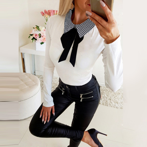 Thanks to the soft and breathable fabric,you can have a comfortable day in this wonderful top. The plaid spliced POLO collar and bow-knot design make this piece look so chic and attractive. Matching with a shorts? Skirt? Or jeans? It is no problem!