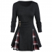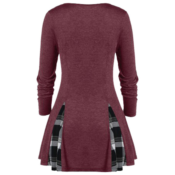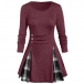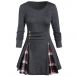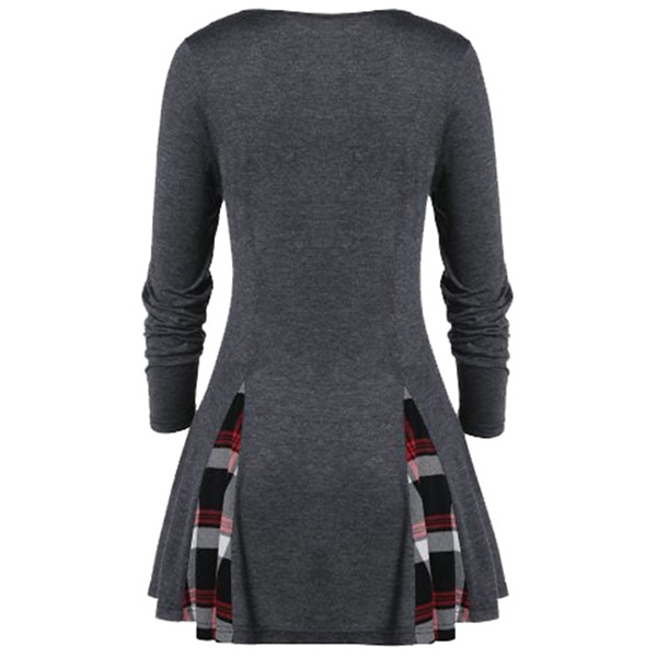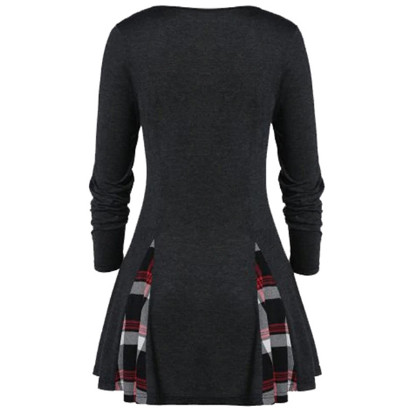 Fashion Plaid Spliced Hem Long Sleeve Round Neck Dress